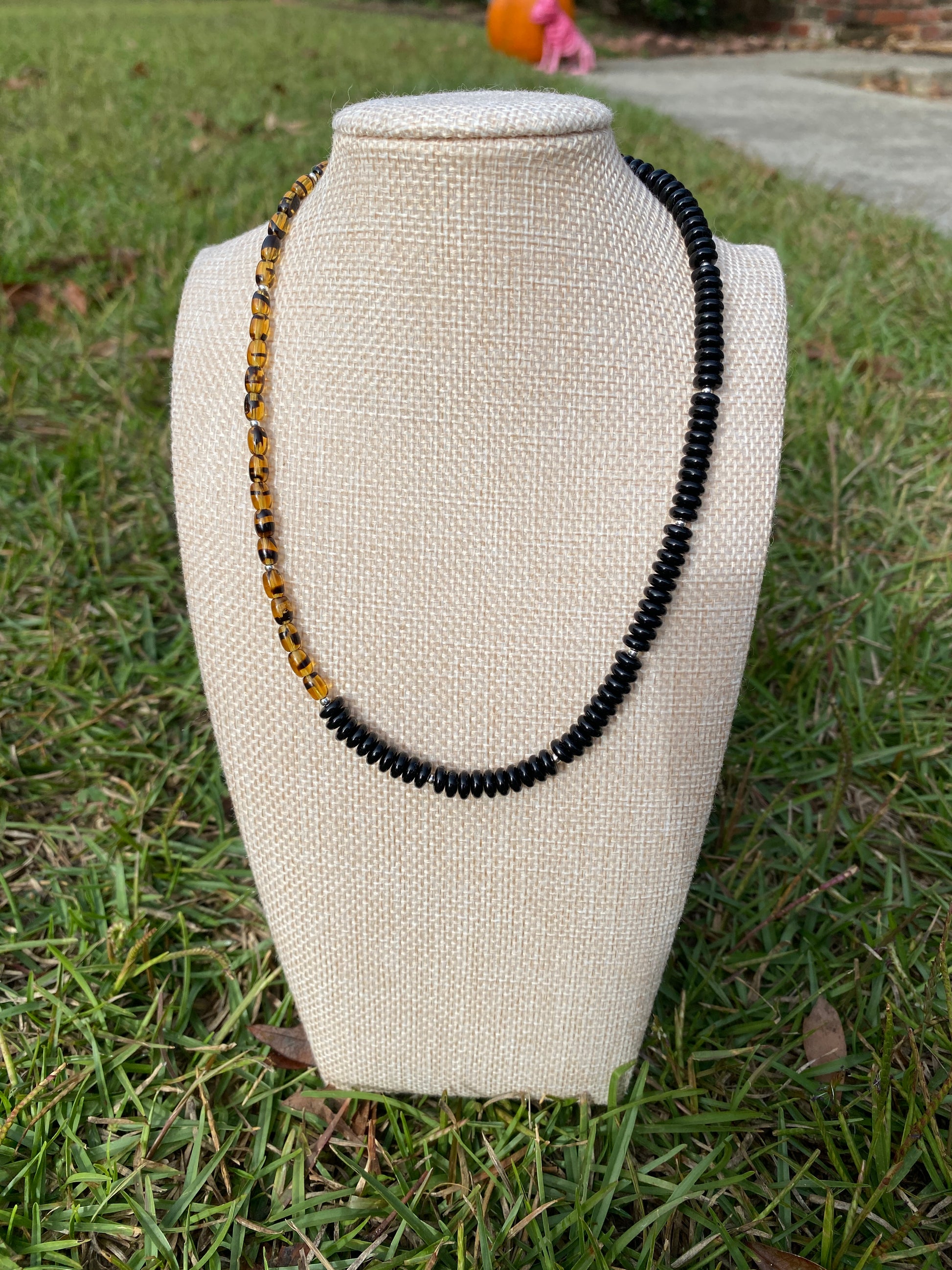 Westie is created using black Rondelle beads and Czech rice tortoise shell beads. Spacer beads are miyuki silver. The clasp is sterling silver 925 with wire guards.